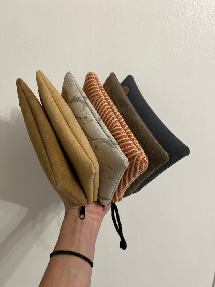 in tessuto d'arredo o in alcantara e foderati in cotone.
