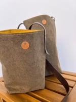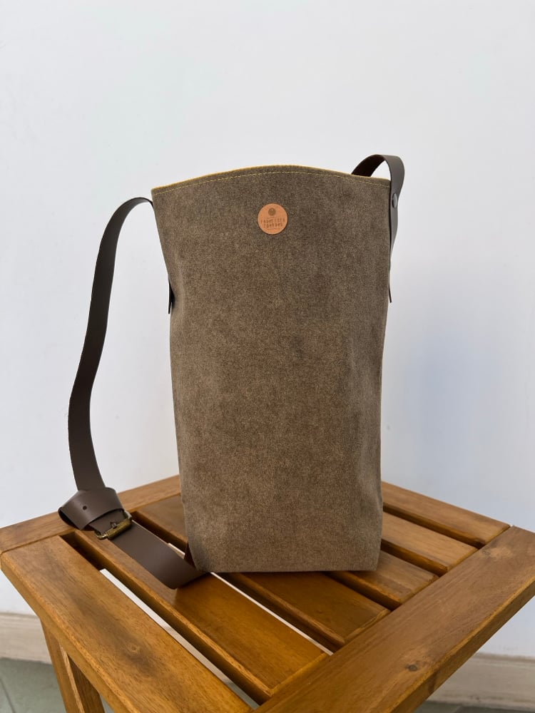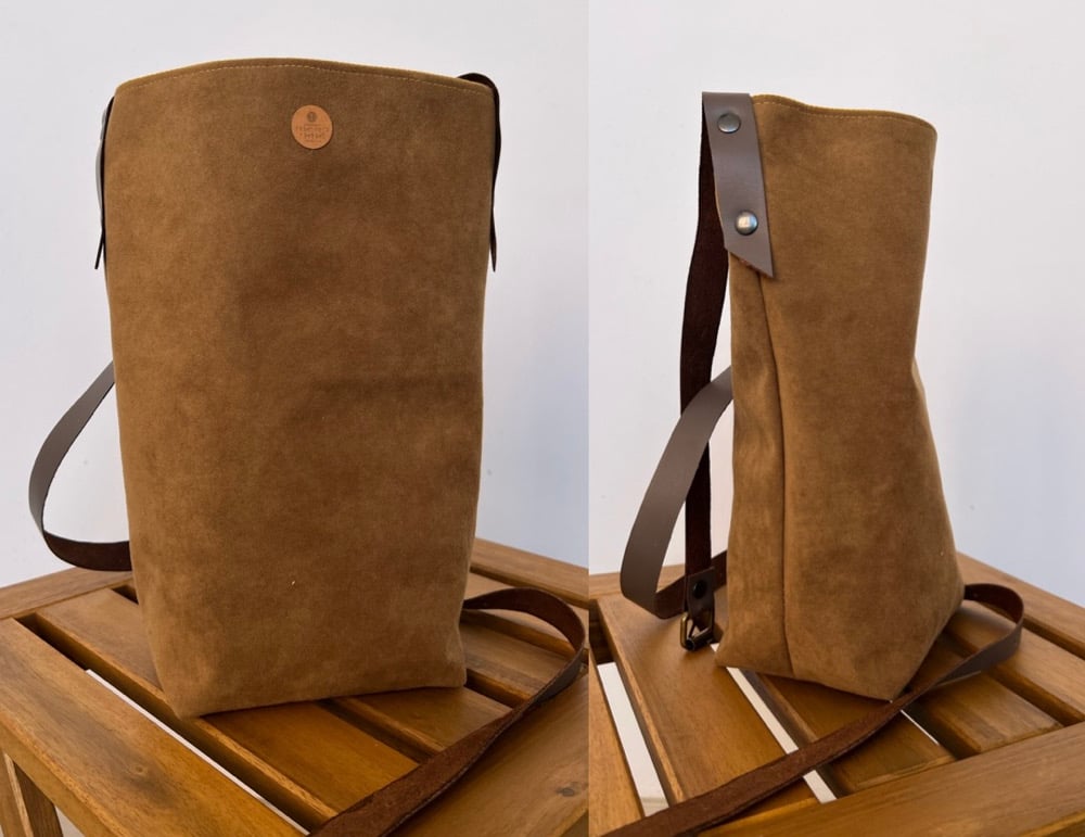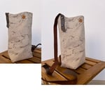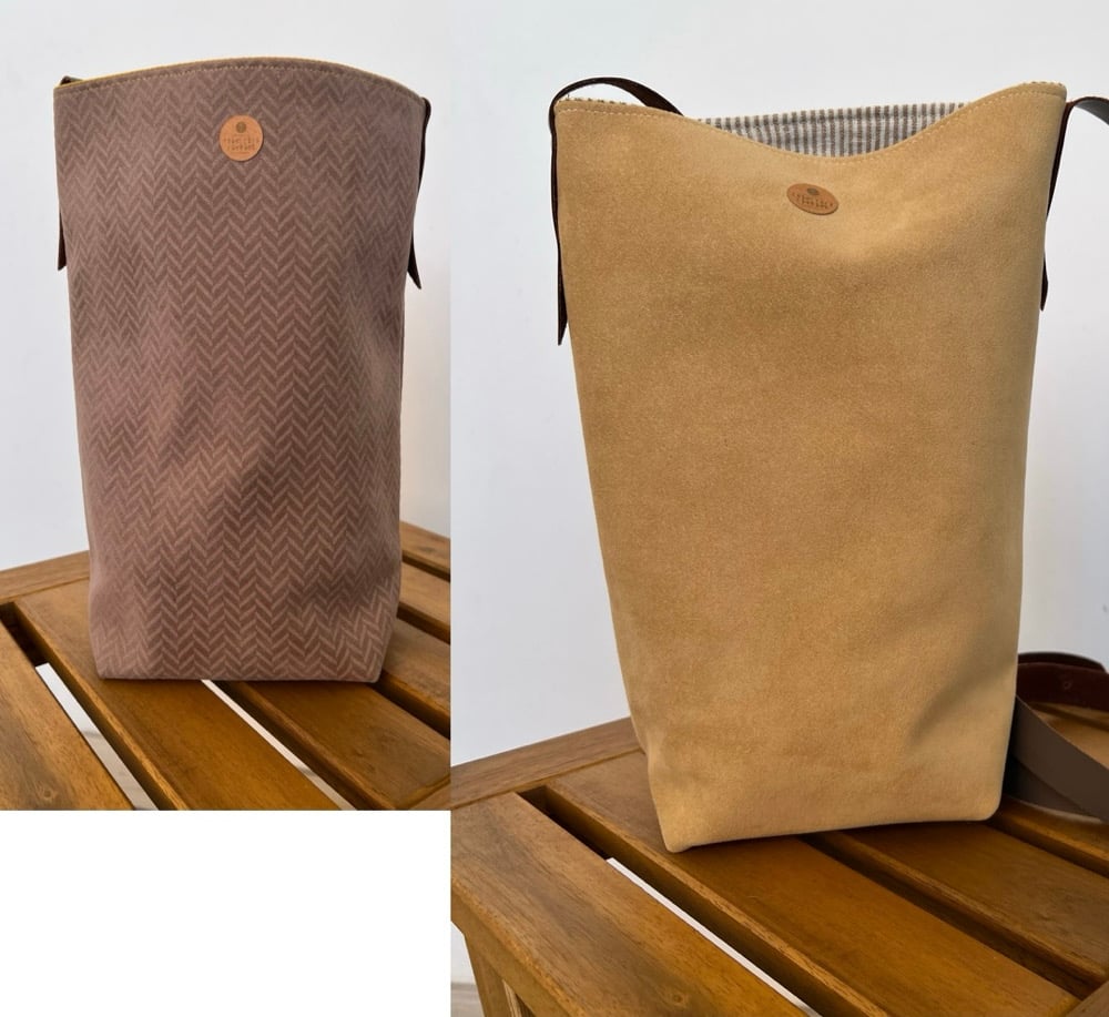 con tracolla in cuoio regolabile e interno foderato(tessuto tinta unita= cotone,tessuto fantasia =lino)