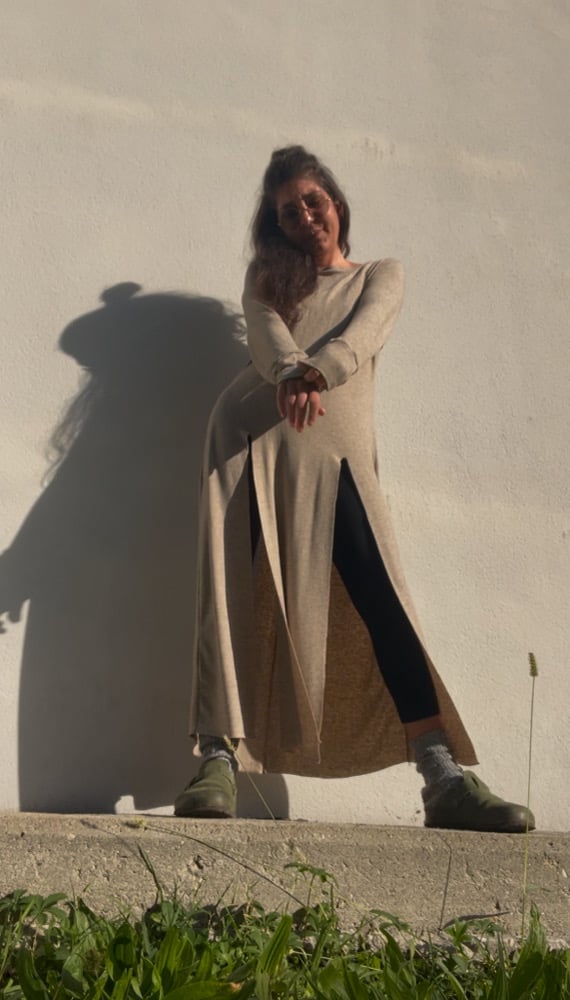 Abito lungo dalla vestibilità morbida e fluida, pensato per accompagnare il corpo con comfort e libertà di movimento.